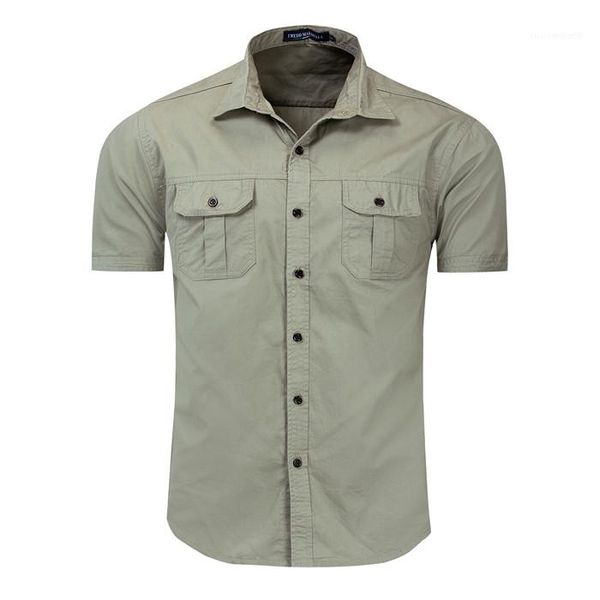 shirt designer military style outdoor with pocket casual shirts summer mens solid color short sleeve, White;black
