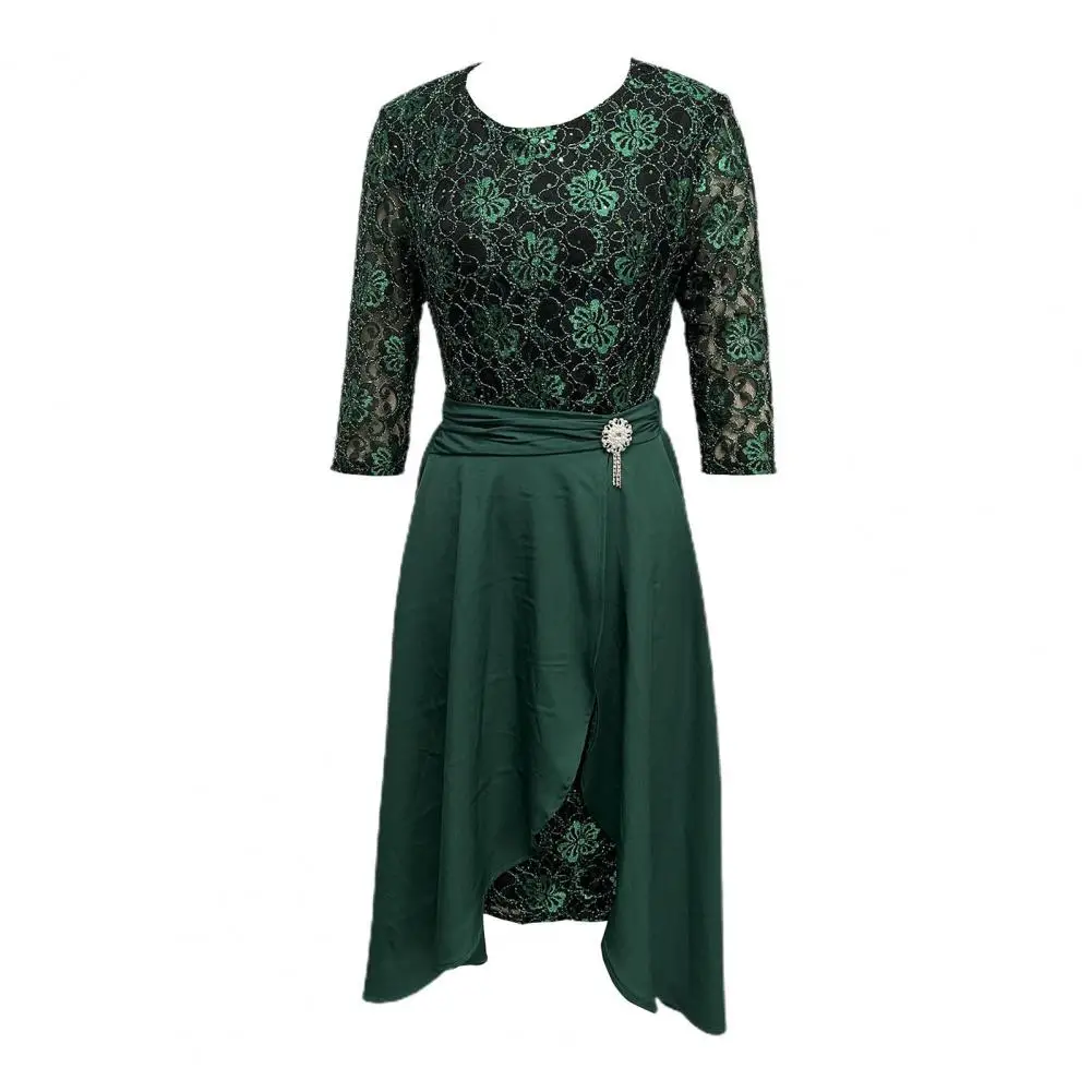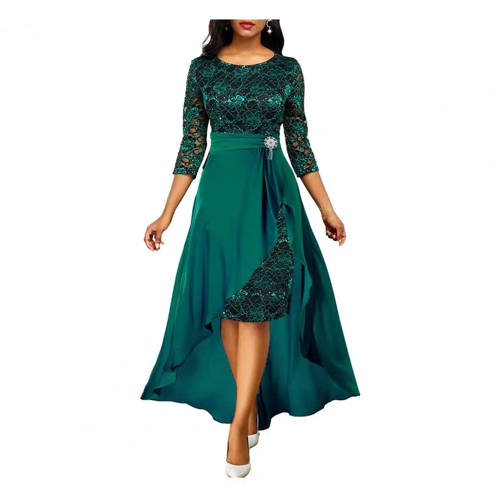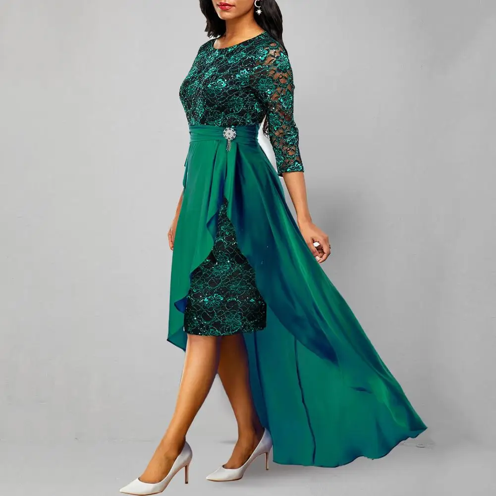 Женское платье с юбкой и оборками на подоле, с завышенной талией и рукавом три четверти