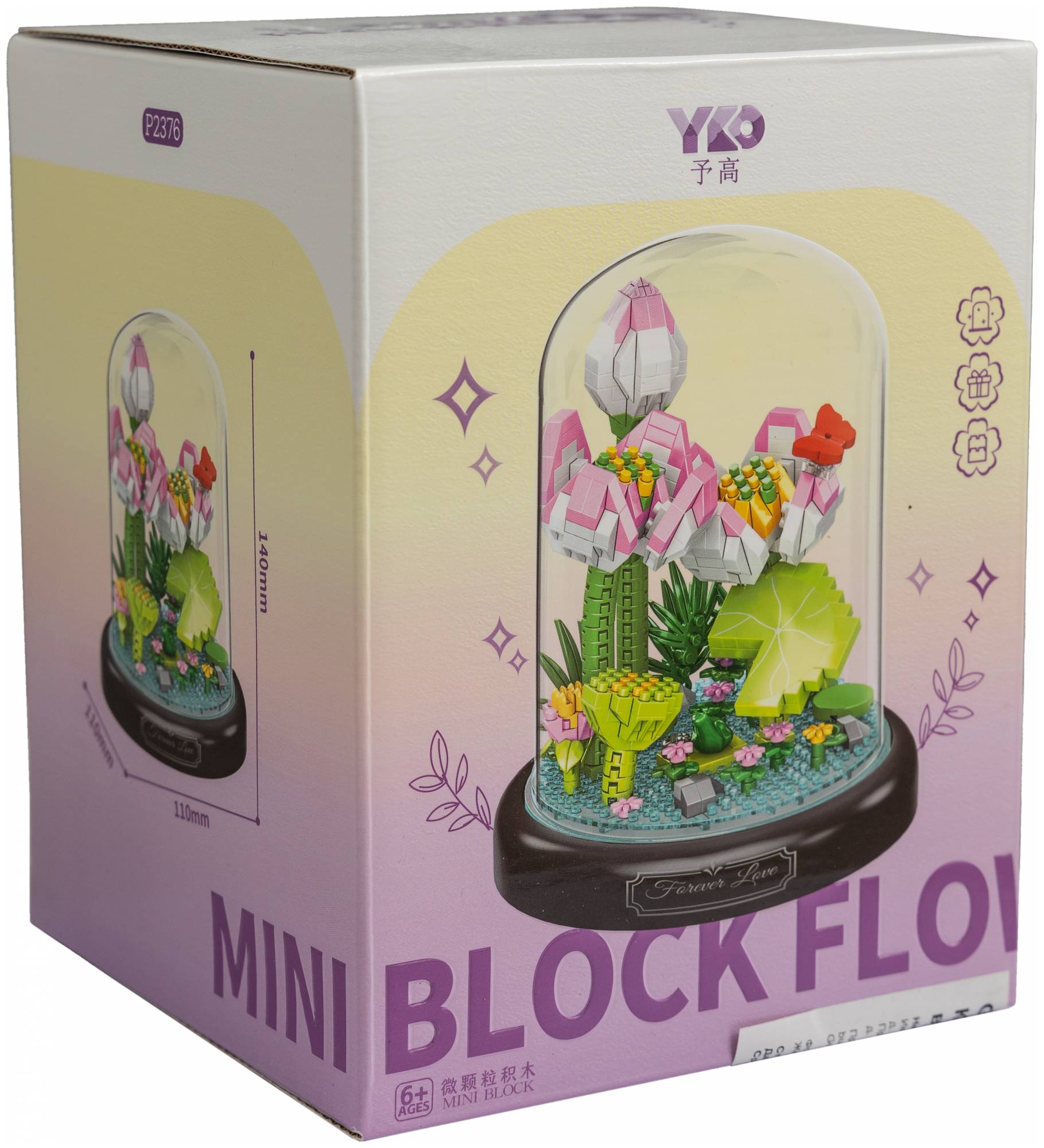 Конструктор неувядающий цветок ГЛАВИГРУШКА 4066 в прозрачной колбе 659 деталей, СM 4066