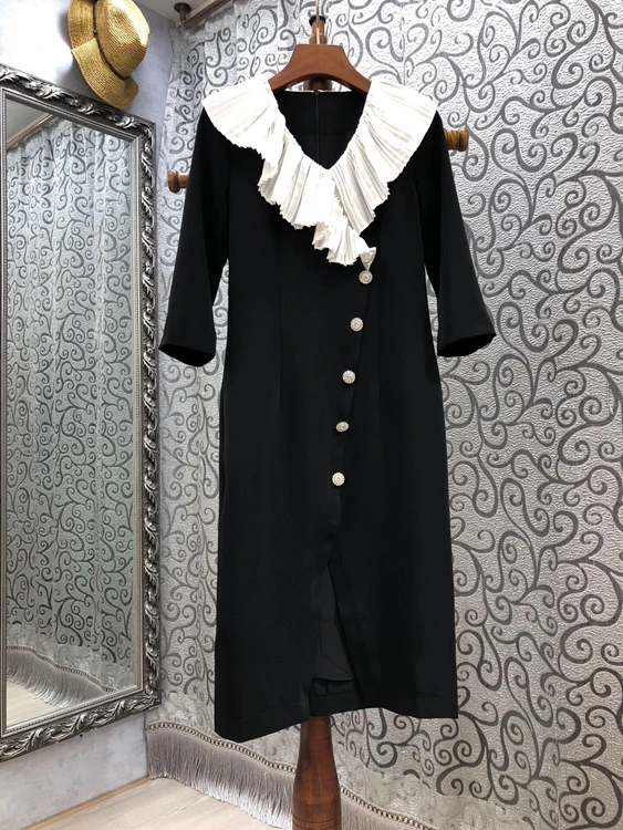 Женское платье с V-образным вырезом, оборками и диагональными пуговицами, длинными рукавами, модель 2021 на весну и лето, 326