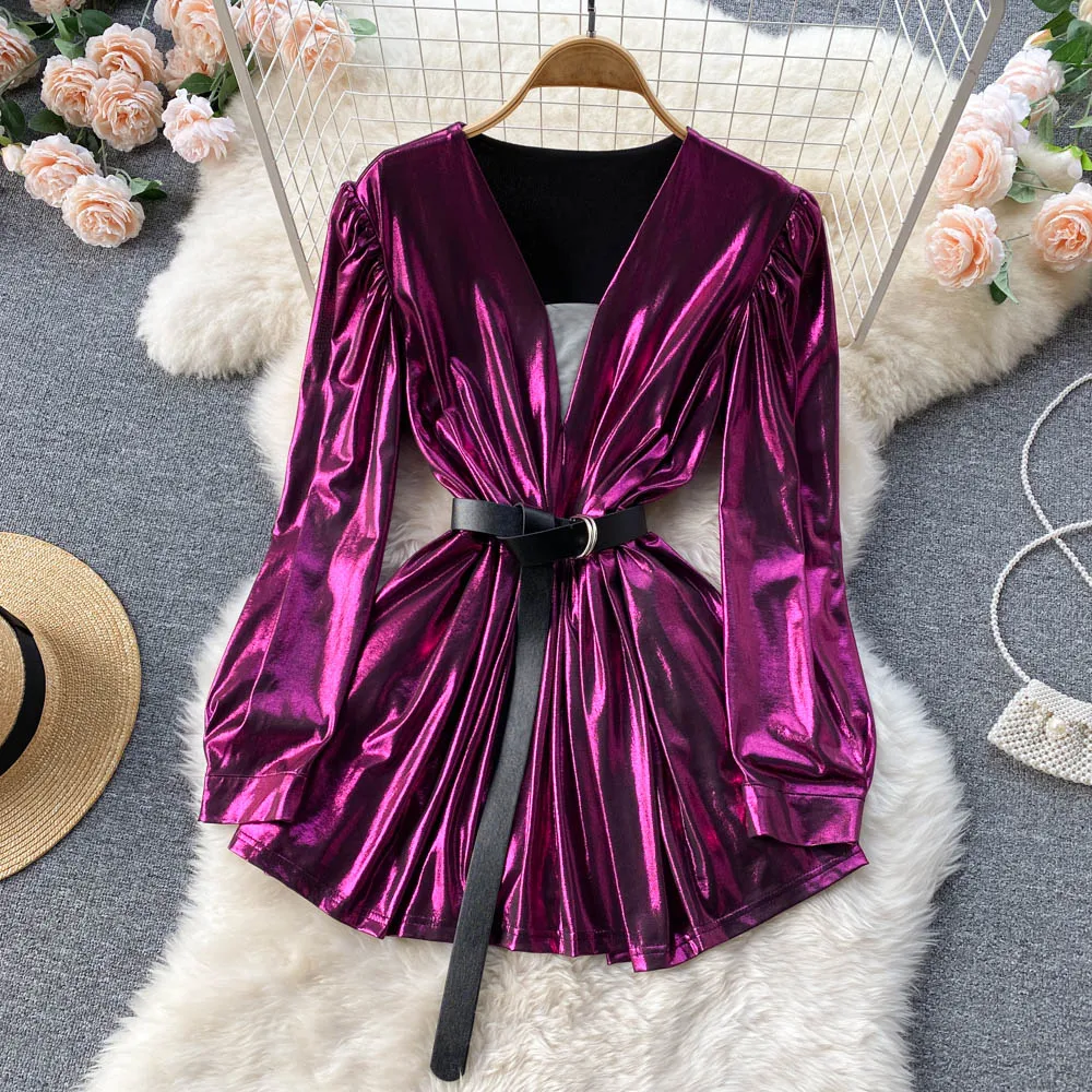 women skirt elegant spring summer pleated womens vintage high waist solid long skirts fashion metallic female, Black