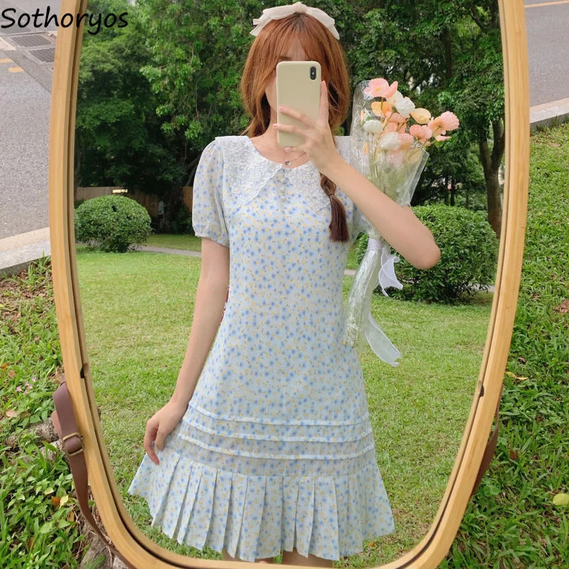 Женское платье-туника в стиле преппи с милым принтом, летнее простое нежное платье для отдыха в стиле Харадзюку, базовое женское платье для вечевечерние НКИ и свидания