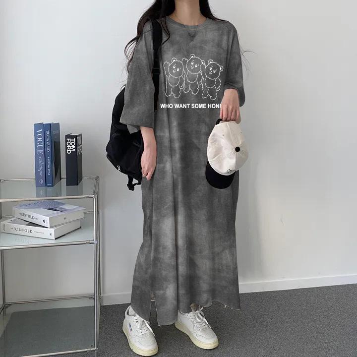 Женское платье-футболка в европейском стиле с принтом тай-дай: Весна/Лето, Средняя длина, Свободный крой, Высокая мода, Повседневные короткие рукава. Extra Large серый