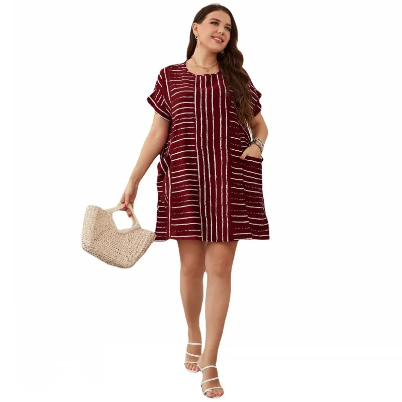 Женское платье-футболка с коротким рукавом, круглым вырезом и карманами