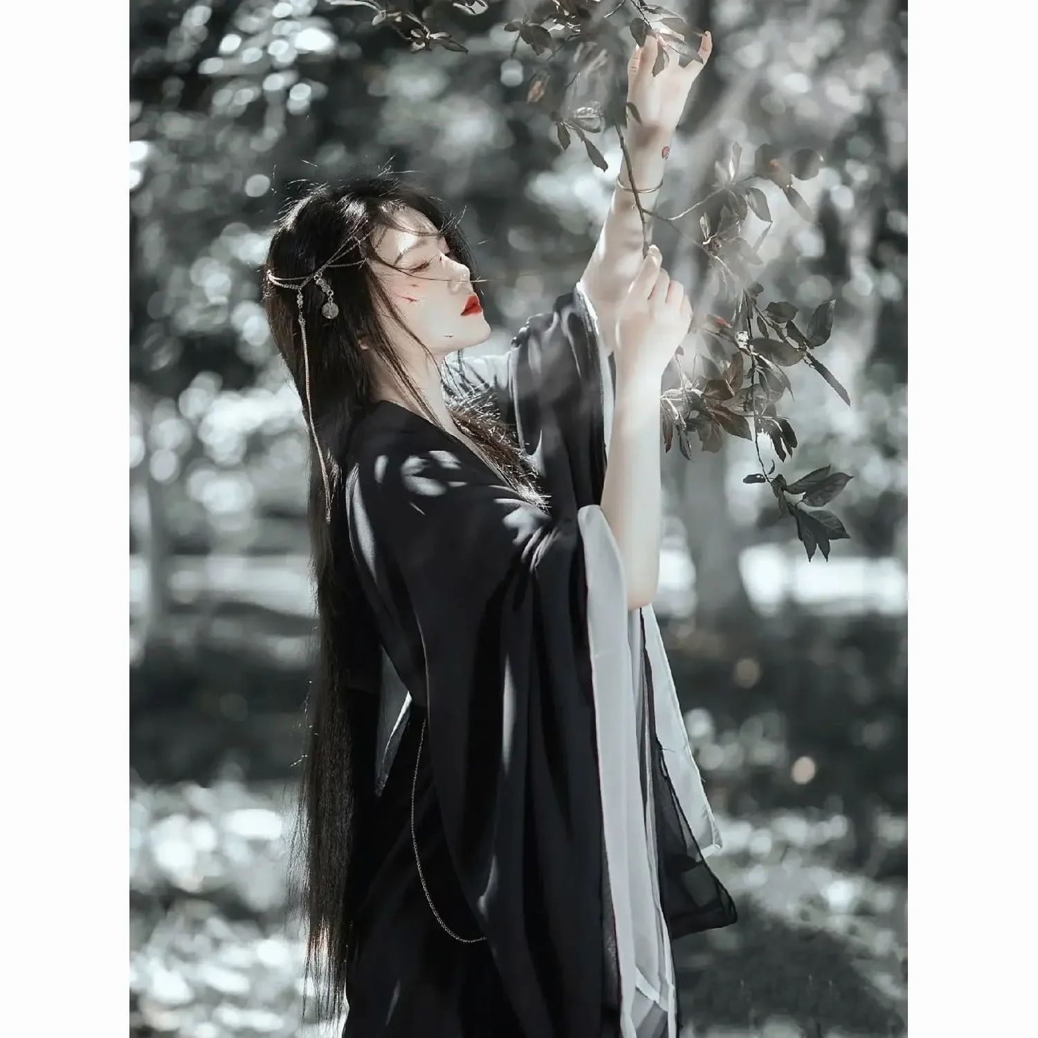 Женское платье Hanfu, женский костюм в старинном стиле, женский костюм для косплея, летний костюм ханьфу с черной курткой и белым платьем