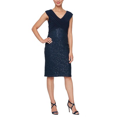 Женское плиссированное коктейльное и вечернее платье миди Alex Evenings BHFO 6962, Navy