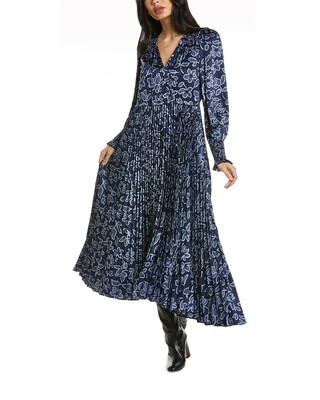 Женское плиссированное платье с завязками спереди Rebecca Taylor Vera Fleur, Синий