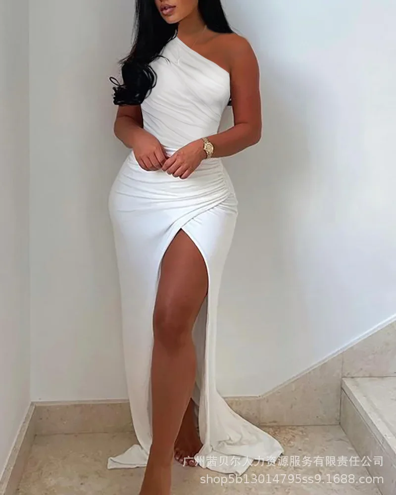 Женское плиссированное платье с открытыми плечами и разрезом, новинка 2023