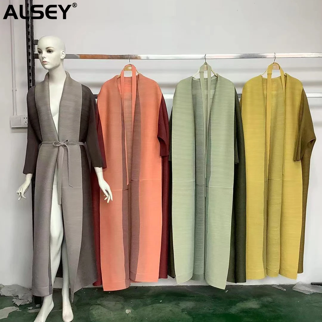 Женское плиссированное платье ALSEY Miyake, длинный плащ с градиентом и рукавами «летучая мышь», Повседневное платье-ветровка с поясом, осень