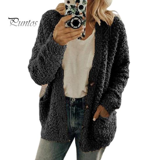 Женское плюшевое пальто с длинными рукавами, однобортная куртка с карманами, однотонное утолщенное теплое плюшевое пальто для повседневной носки на осень-зиму 3XL чёрный