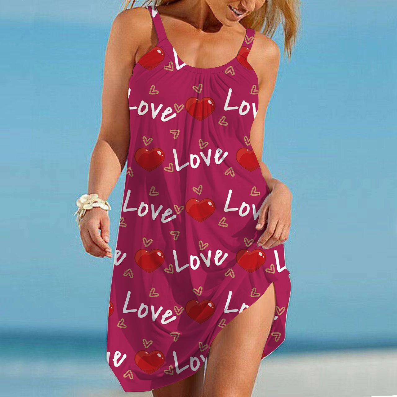 Женское пляжное платье Пляжная одежда Мини-платье Love Love Print Повседневное современное платье Без рукавов Свободный крой Повседневное уличное розовое синее летнее 8XL красный