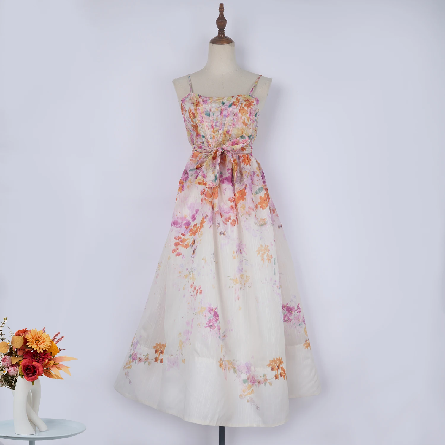 Женское пляжное платье с поясом без рукавов Coigarsam, белые платья на тонких бретельках с высокой талией, 2024