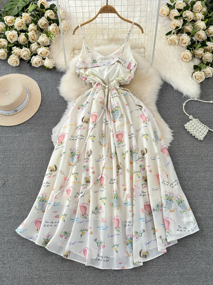 Женское пляжное платье-трапеция с V-образным вырезом и открытой спиной