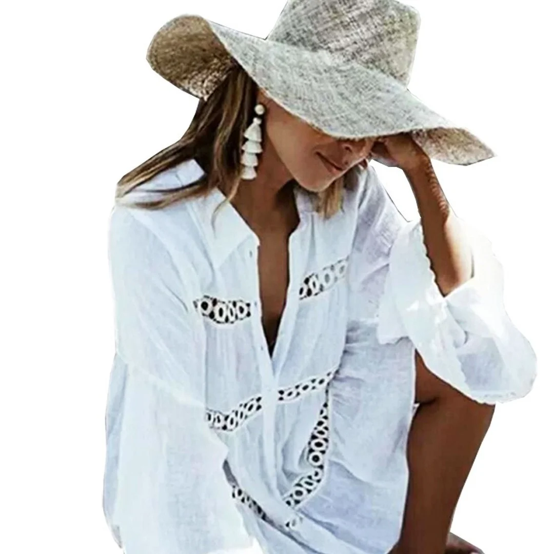 Женское пляжное платье-туника, однотонное белое парео из хлопка с высоким воротником и рукавами-крылышками, 2022