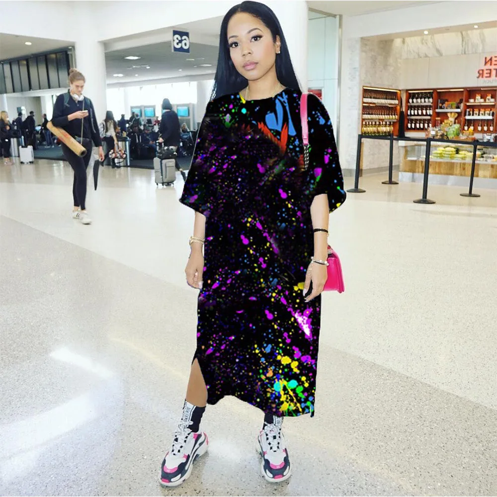 Женское повседневное Модное Длинное Платье с принтом звездного неба и короткими рукавами