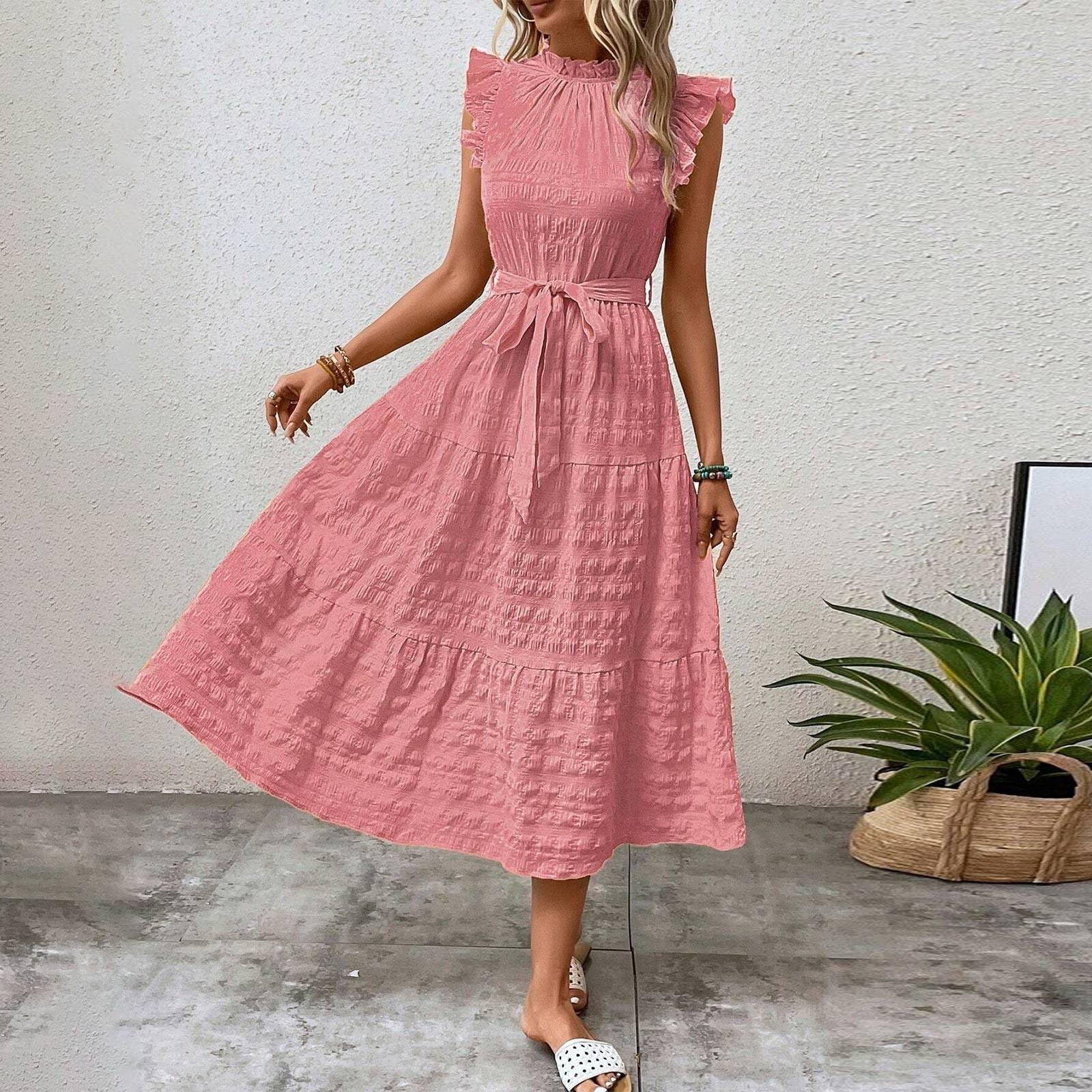 Женское повседневное длинное платье без рукавов с V-образным вырезом и принтом перьев в стиле ретро, пляжные осенние платья для отдыха, повседневные женские платья XXL розовый