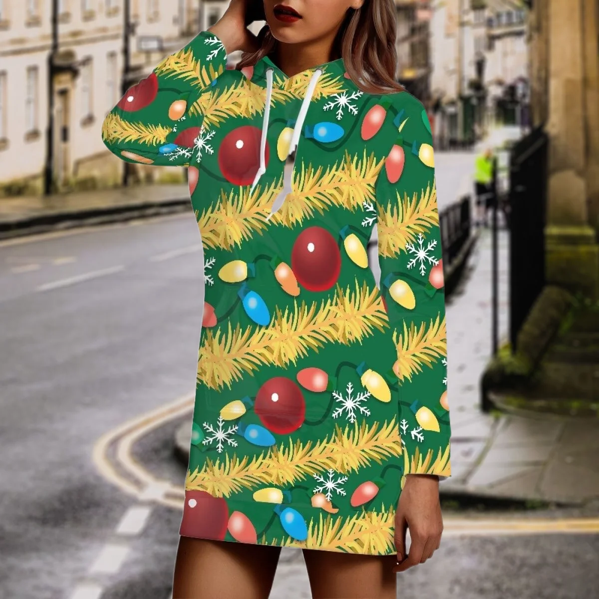Женское повседневное длинное платье-свитшот с принтом рождественской елки