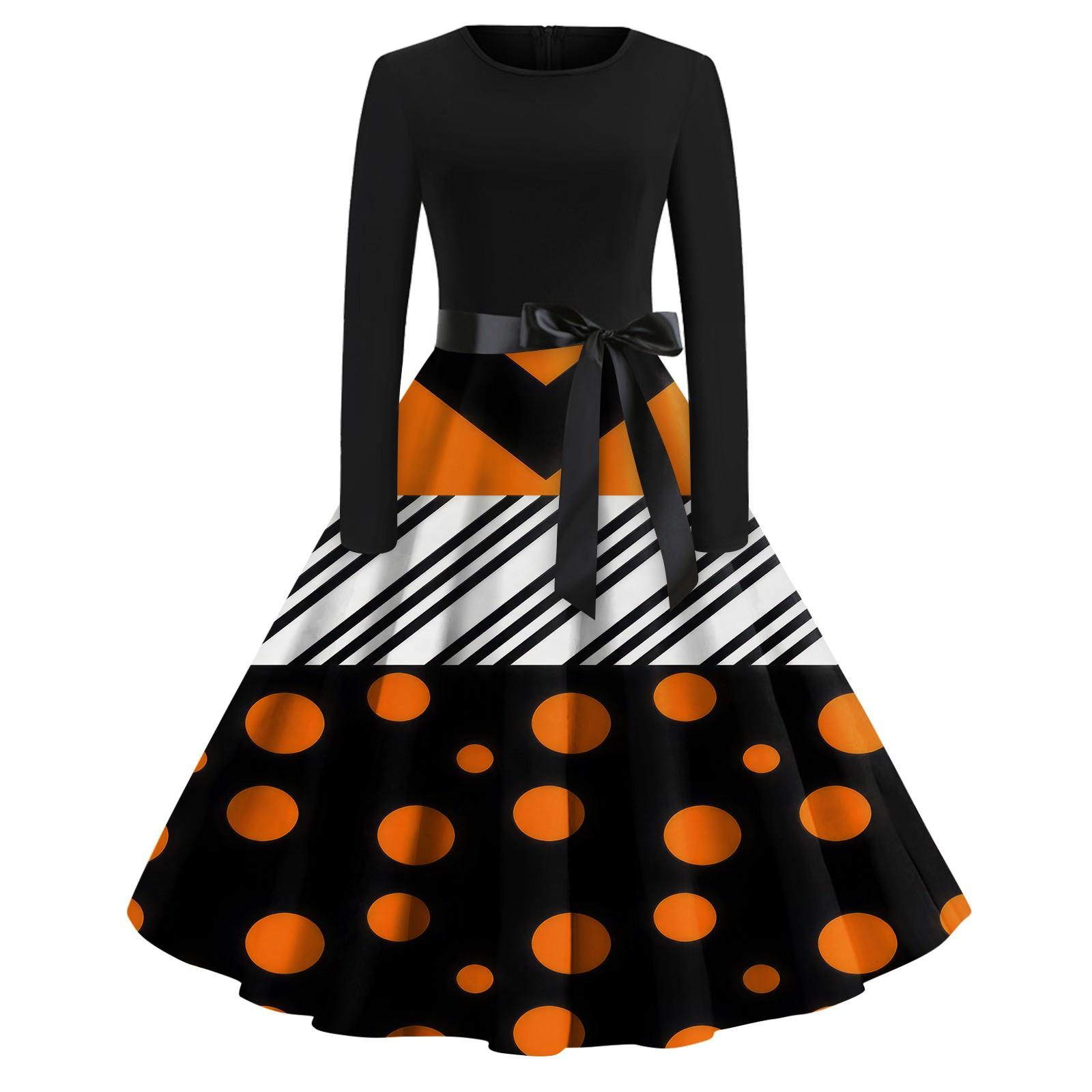 Женское повседневное и модное винтажное платье с круглым вырезом и принтом L