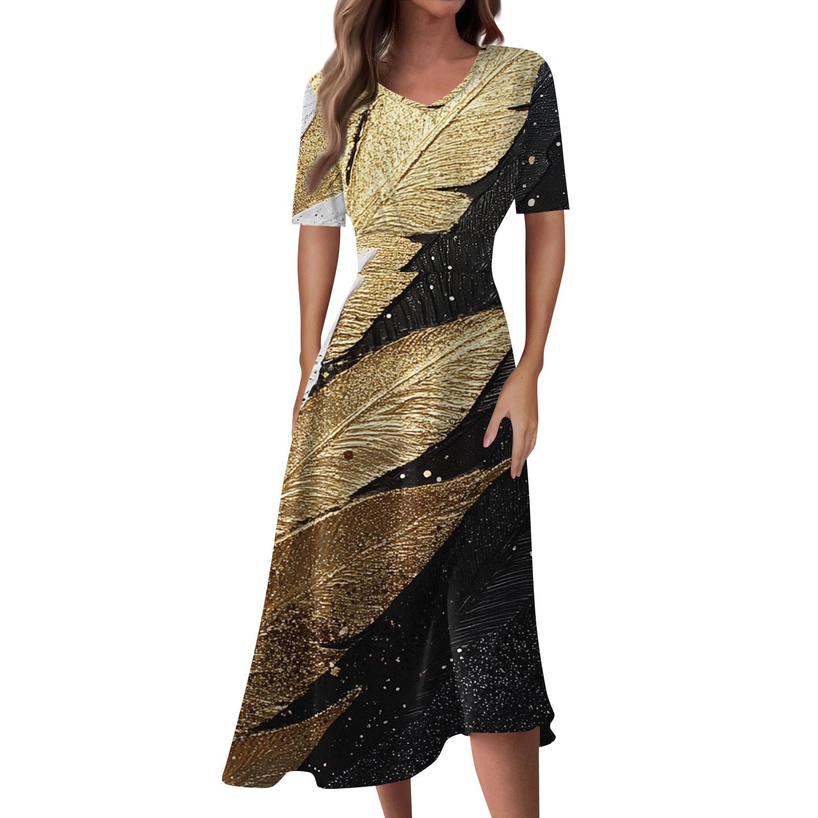 Женское повседневное модное длинное свободное платье с v-образным вырезом и коротким рукавом на талии M жёлтый