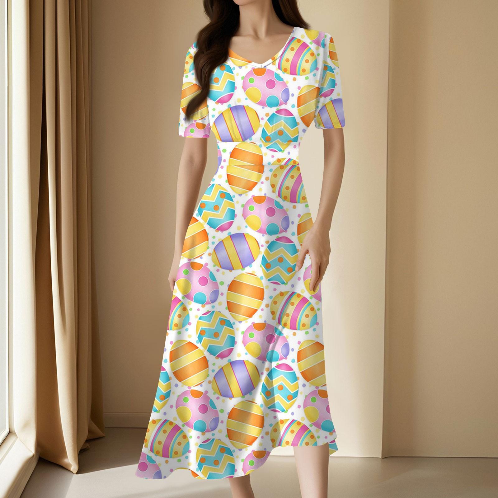 Женское повседневное модное длинное свободное платье с v-образным вырезом и коротким рукавом на талии S жёлтый