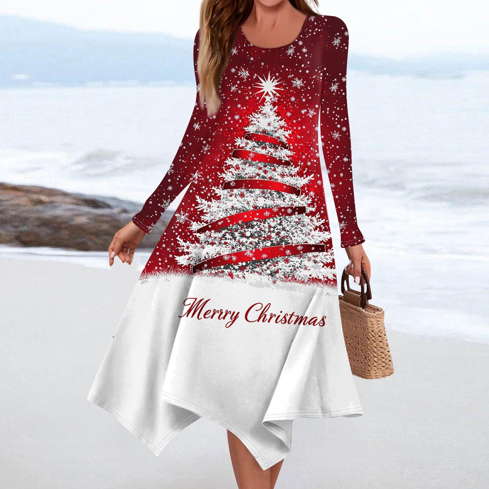 Женское повседневное модное платье миди с круглым вырезом и длинным рукавом с принтом и неровным подолом XL белый