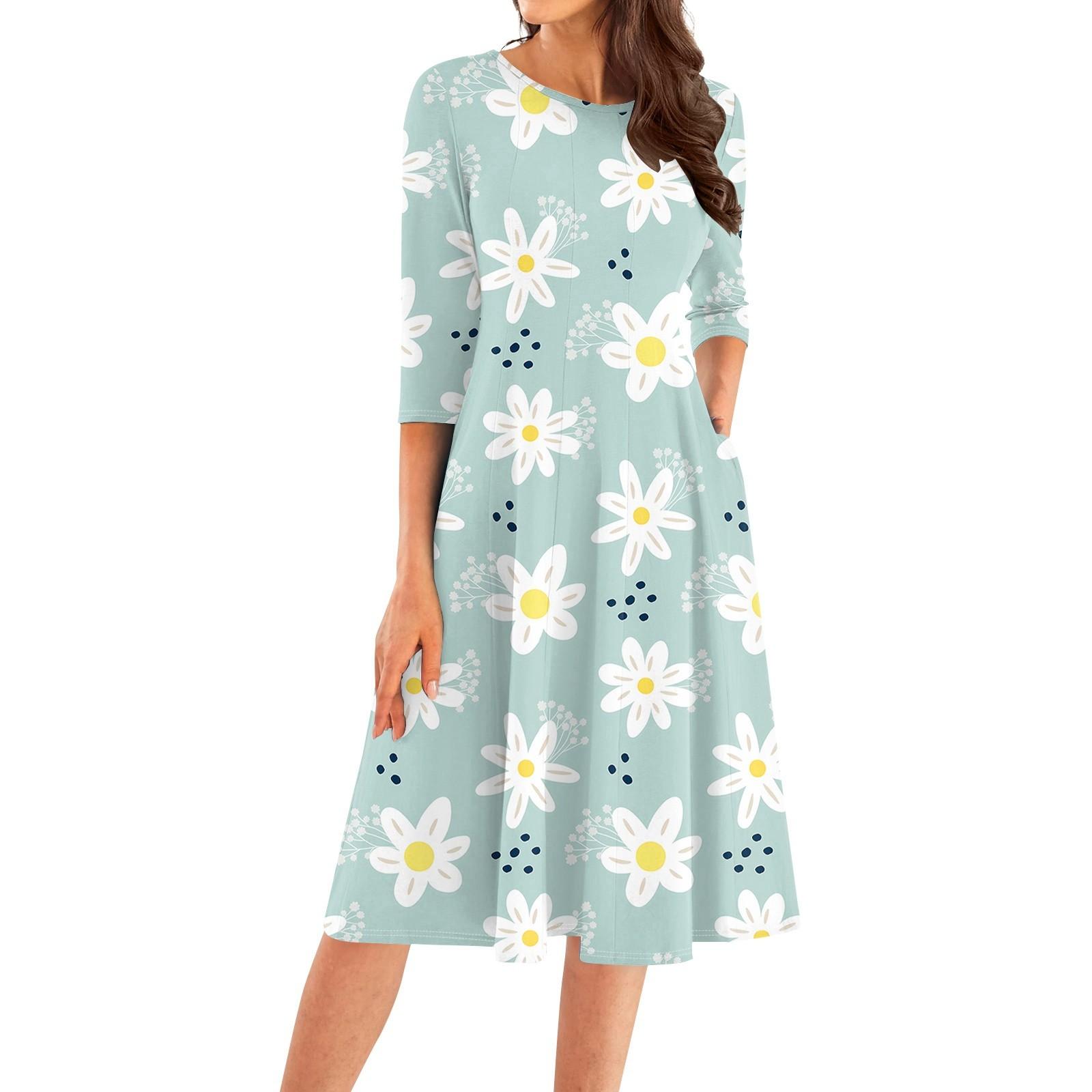 Женское повседневное модное платье миди с круглым вырезом и рукавом три четверти XXL светло-синий