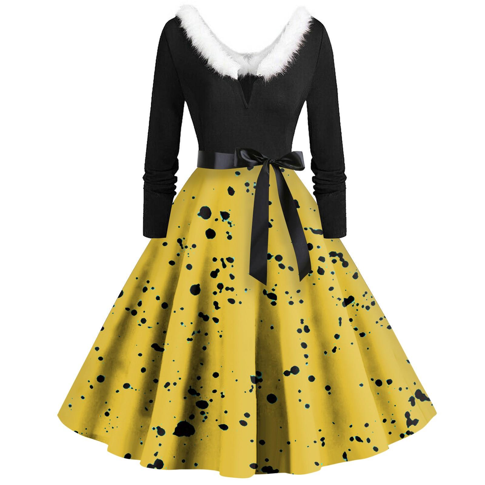 Женское повседневное и модное платье с длинными рукавами, V-образным вырезом и принтом в горошек, застегивающееся на молнию XL жёлтый