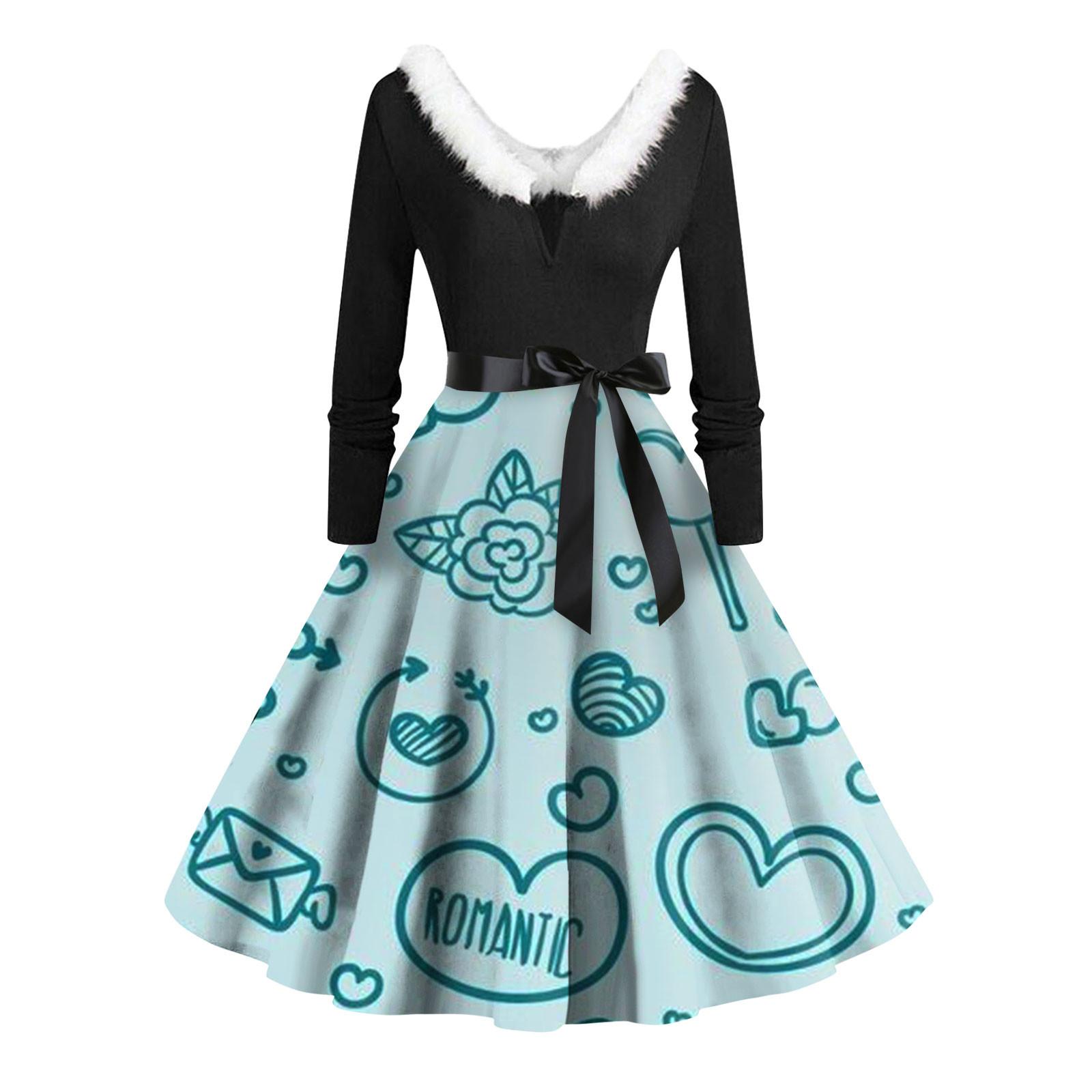 Женское повседневное и модное платье с длинными рукавами и V-образным вырезом, с принтом ко Дню святого Валентина, застегивающееся на молнию L синий