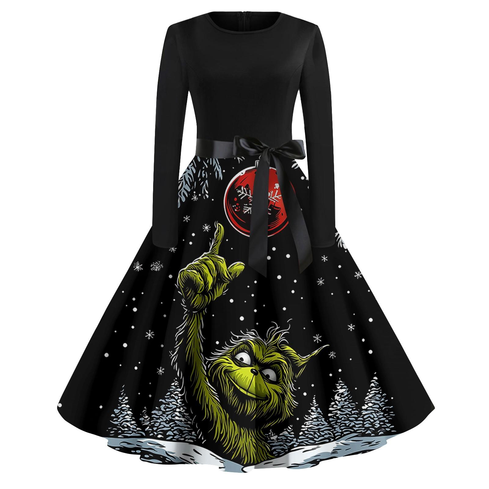 Женское повседневное модное платье с длинным рукавом и принтом, вечернее повседневное платье с круглым вырезом XXXXL чёрный
