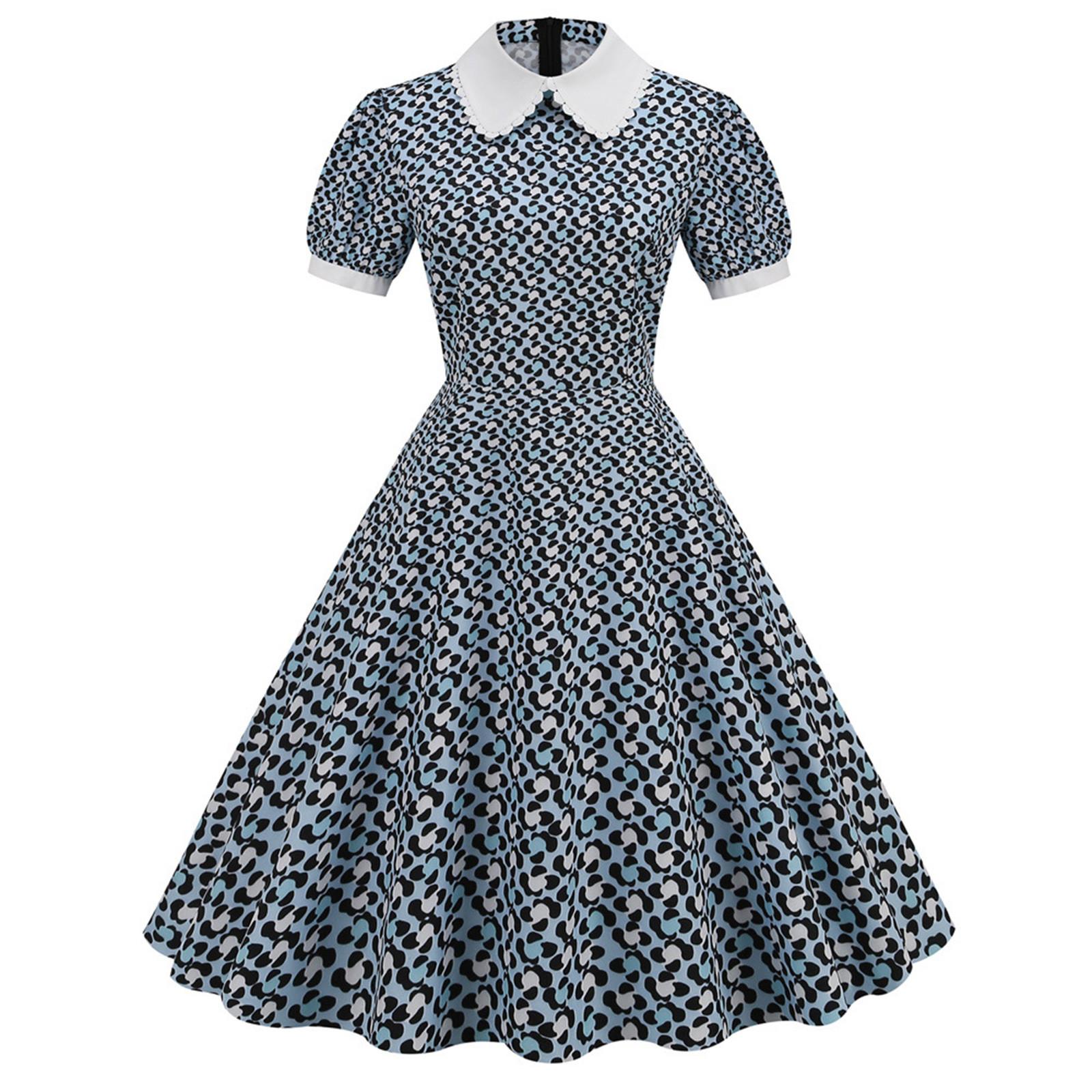 Женское повседневное модное платье с кукольным воротником и короткими рукавами с принтом L чёрный