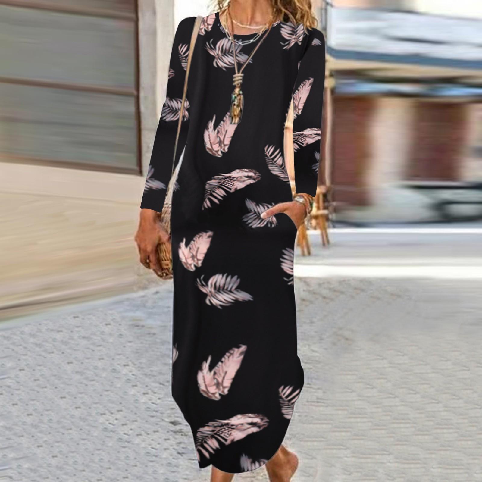 Женское повседневное модное платье с принтом 2022 года, платье с длинным рукавом и круглым вырезом M чёрный