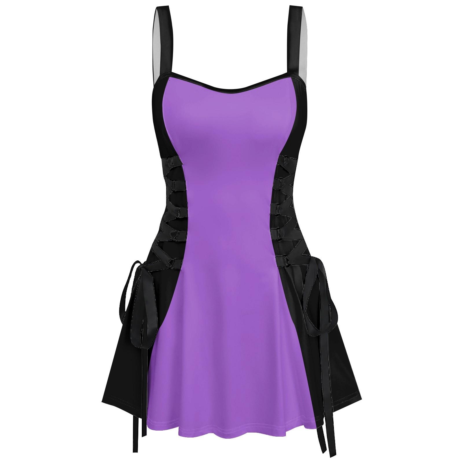 Женское повседневное модное платье с цветными блоками и сексуальным ремешком в стиле ретро, короткое платье в стиле ретро, юбка в стиле ретро XXXL фиолетовый