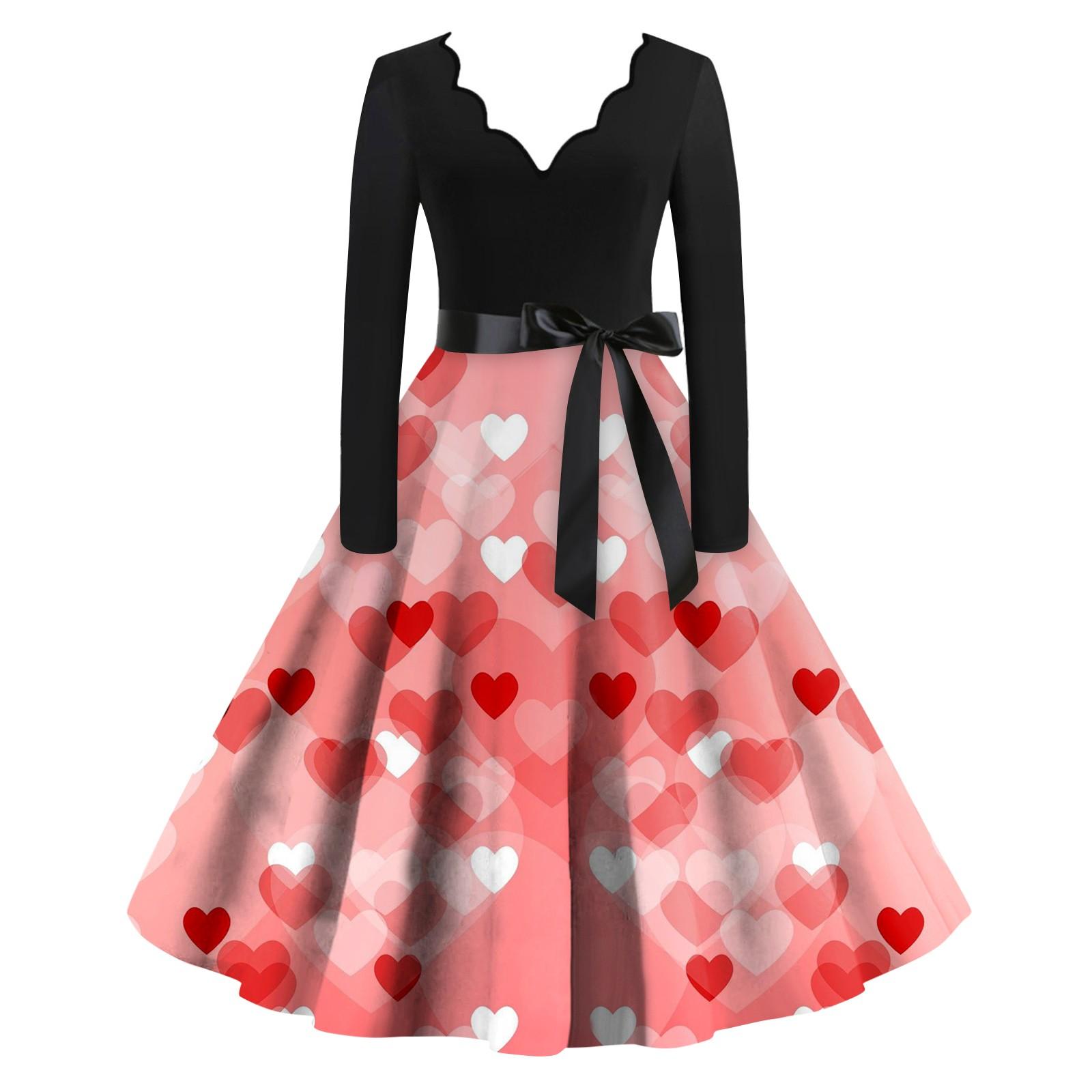 Женское повседневное модное платье с V-образным вырезом и длинными рукавами в стиле ретро с принтом «любовь» XL