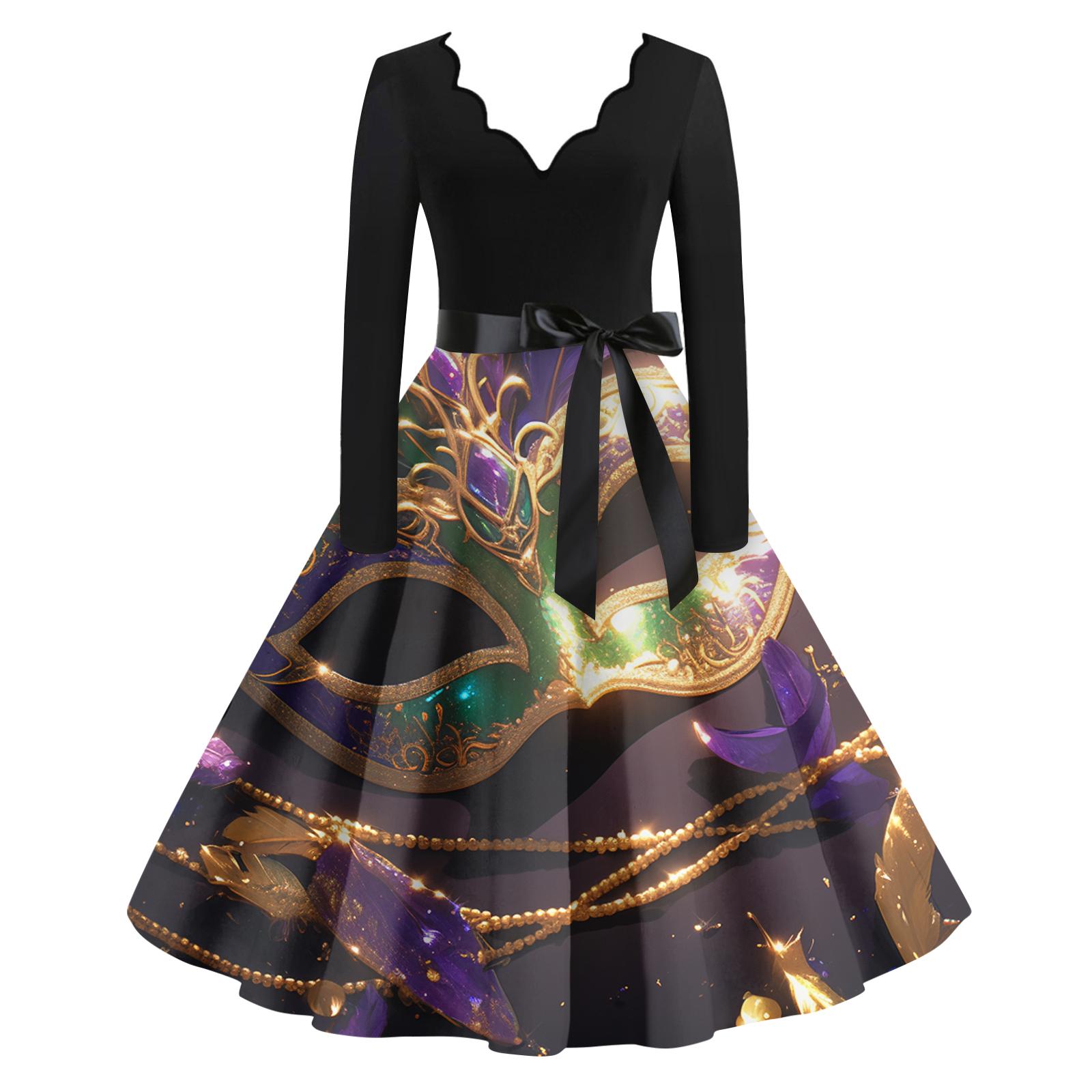 Женское повседневное модное платье с V-образным вырезом и длинным рукавом с принтом в винтажном стиле XXXXL