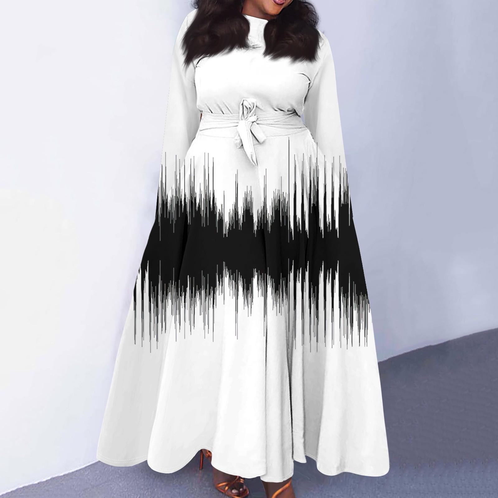 Женское повседневное модное полосатое платье большого размера с круглым вырезом, длинным рукавом, карманами и бретельками, повседневное и удобное XL белый