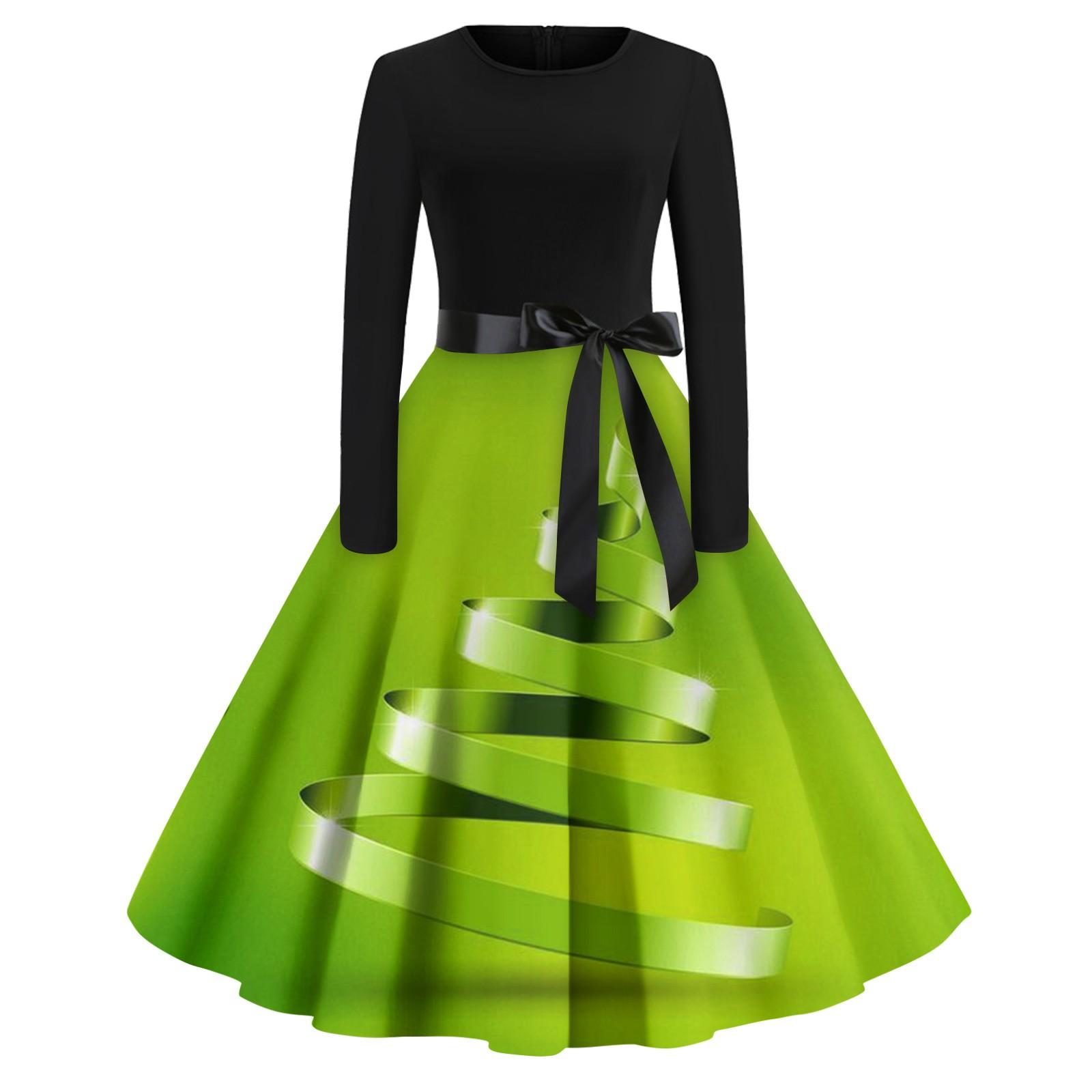 Женское повседневное модное рождественское платье с длинными рукавами и принтом снежинок, вечерние повседневные платья с вырезом и круглым вырезом XL зелёный