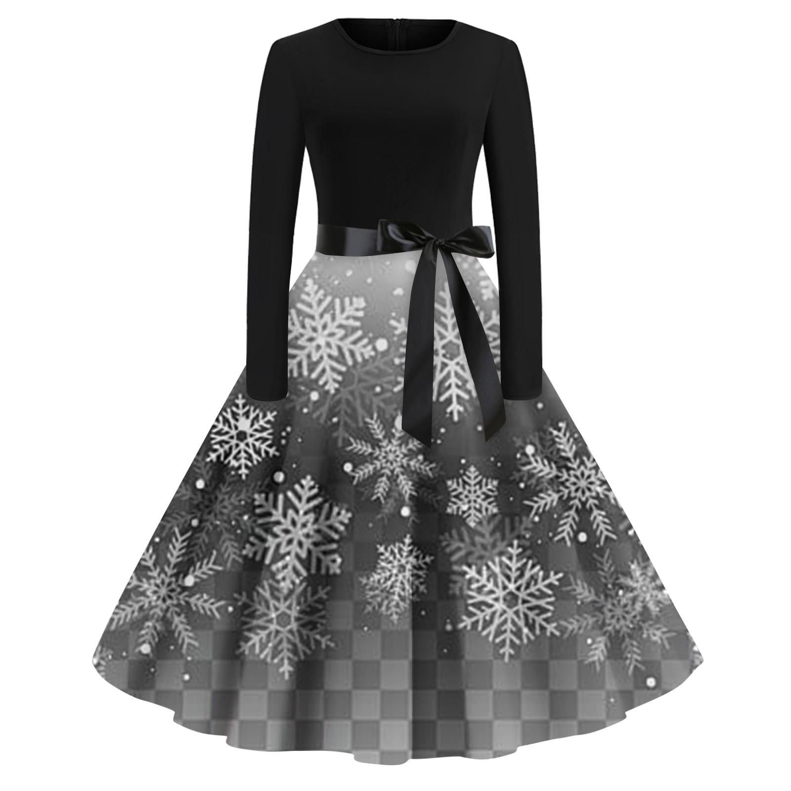 Женское повседневное модное рождественское платье с длинными рукавами и принтом снежинок, вечерние повседневные платья с вырезом и круглым вырезом XL серый