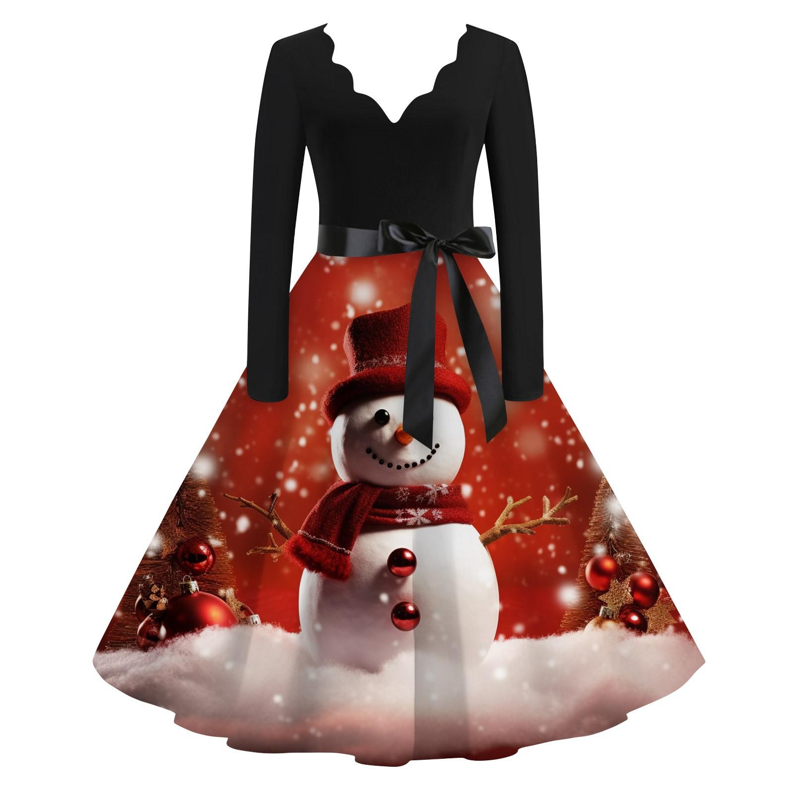 Женское повседневное и модное рождественское платье с V-образным вырезом и большим подолом, длинное платье с рукавами M красный