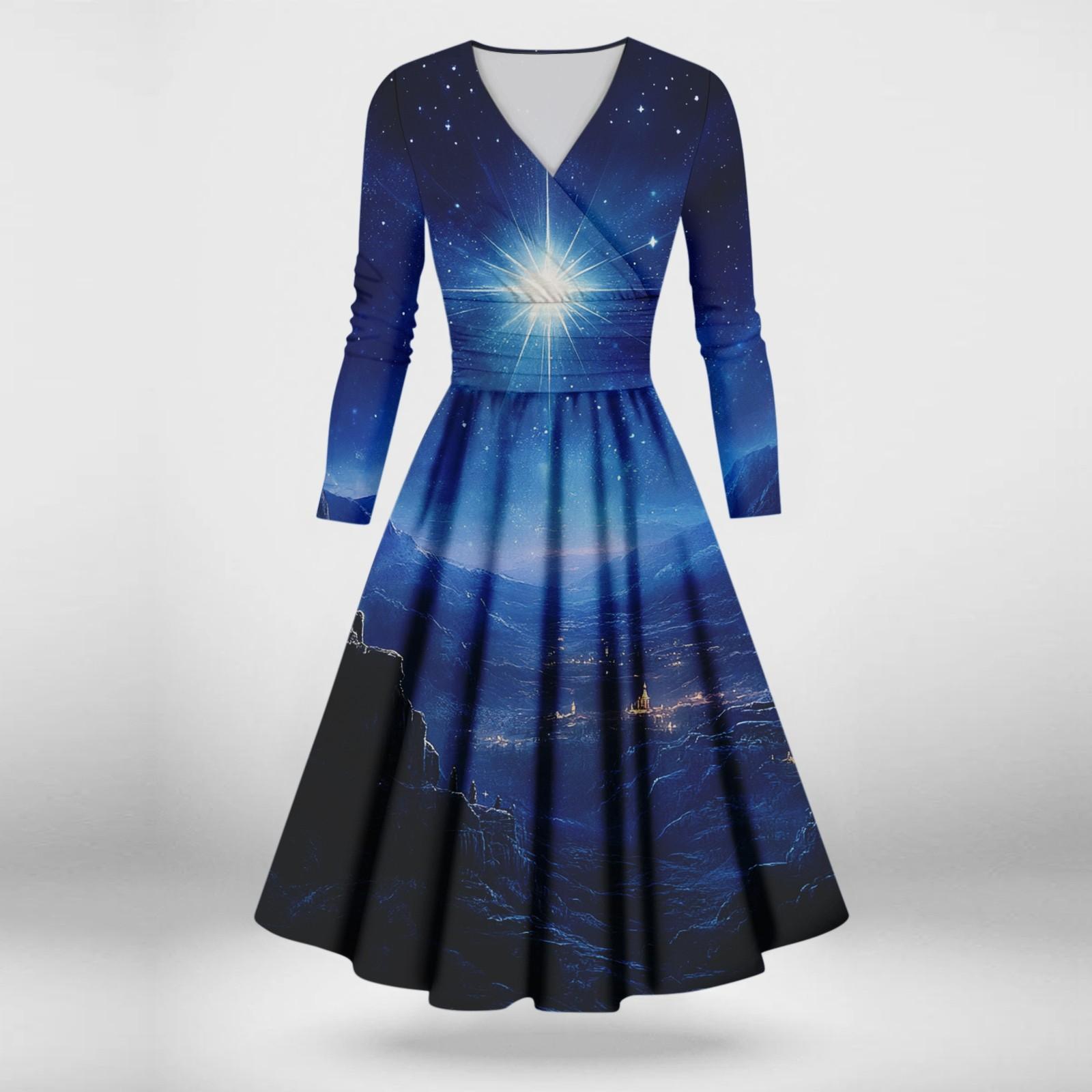 Женское повседневное и модное сексуальное платье с v-образным вырезом и длинными рукавами с рождественским принтом XXXL