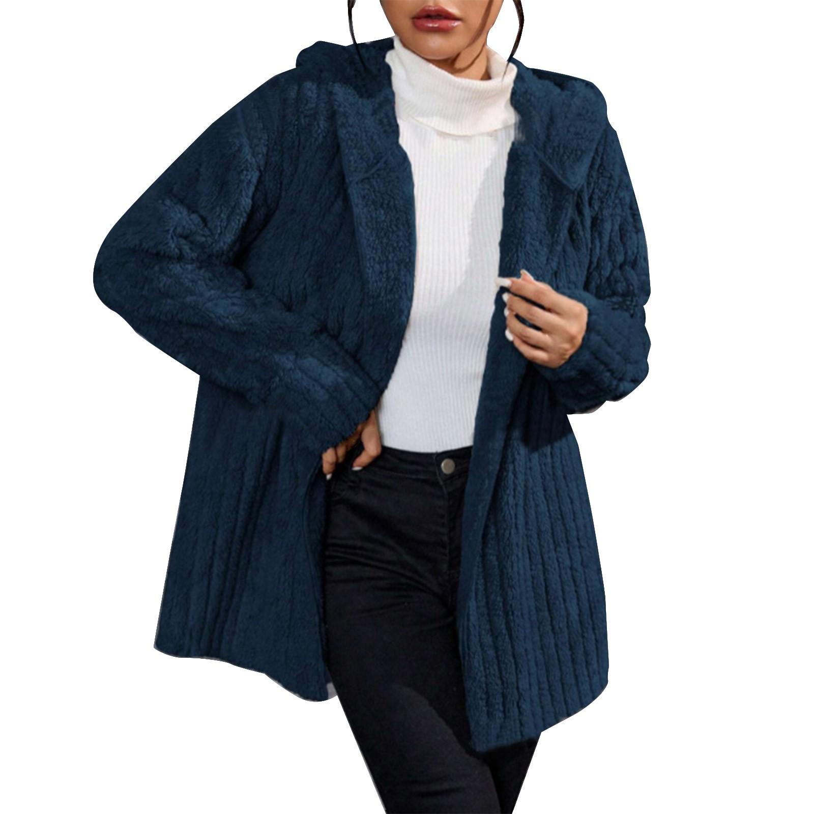 Женское повседневное модное удобное свободное и зимнее теплое модное плюшевое пальто с капюшоном в вертикальную полоску большого размера модное однотонное пальто L