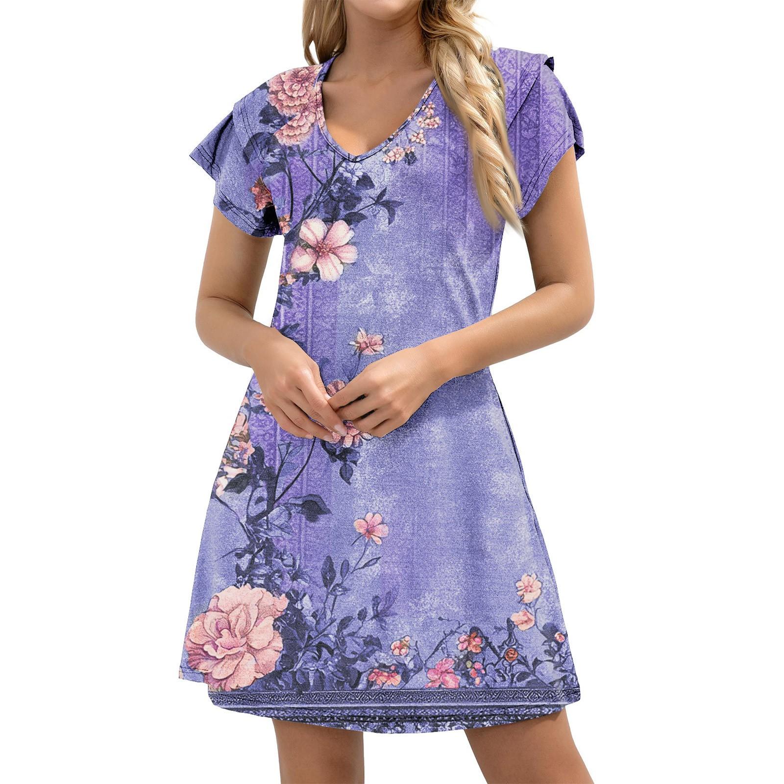 Женское повседневное платье А-силуэта с V-образным вырезом и короткими оборками по краю, платье с карманами на манжетах XL