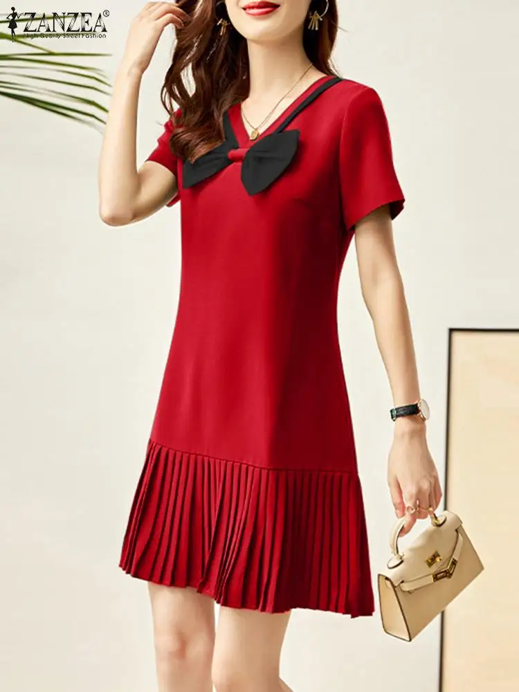 Женское повседневное праздничное платье ZANZEA, модные плиссированные платья с коротким рукавом и V-образным вырезом, элегантный женский сарафан большого размера