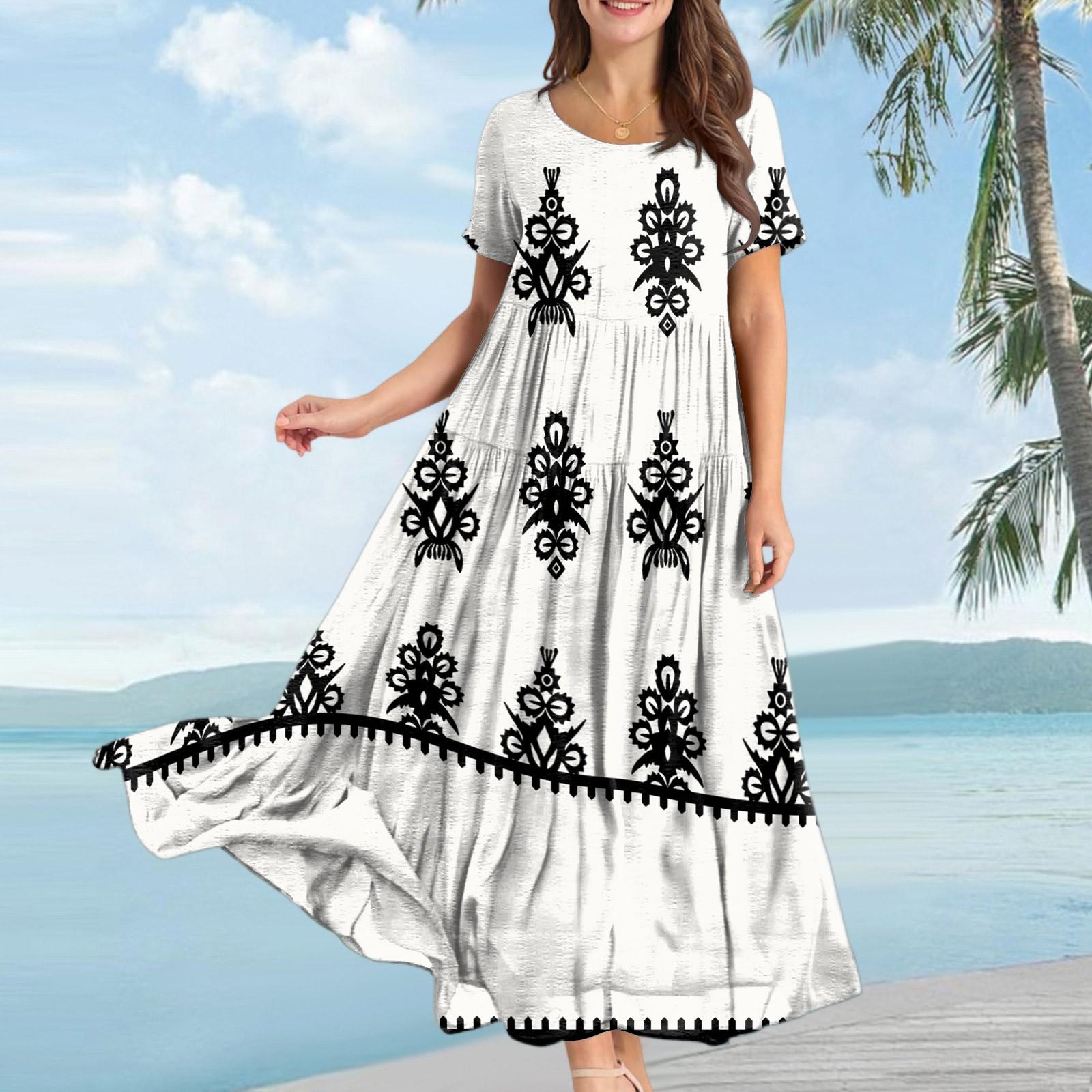Женское повседневное свободное богемное платье с цветочным принтом, длинное макси-платье с коротким рукавом, летнее пляжное платье-качели XL белый