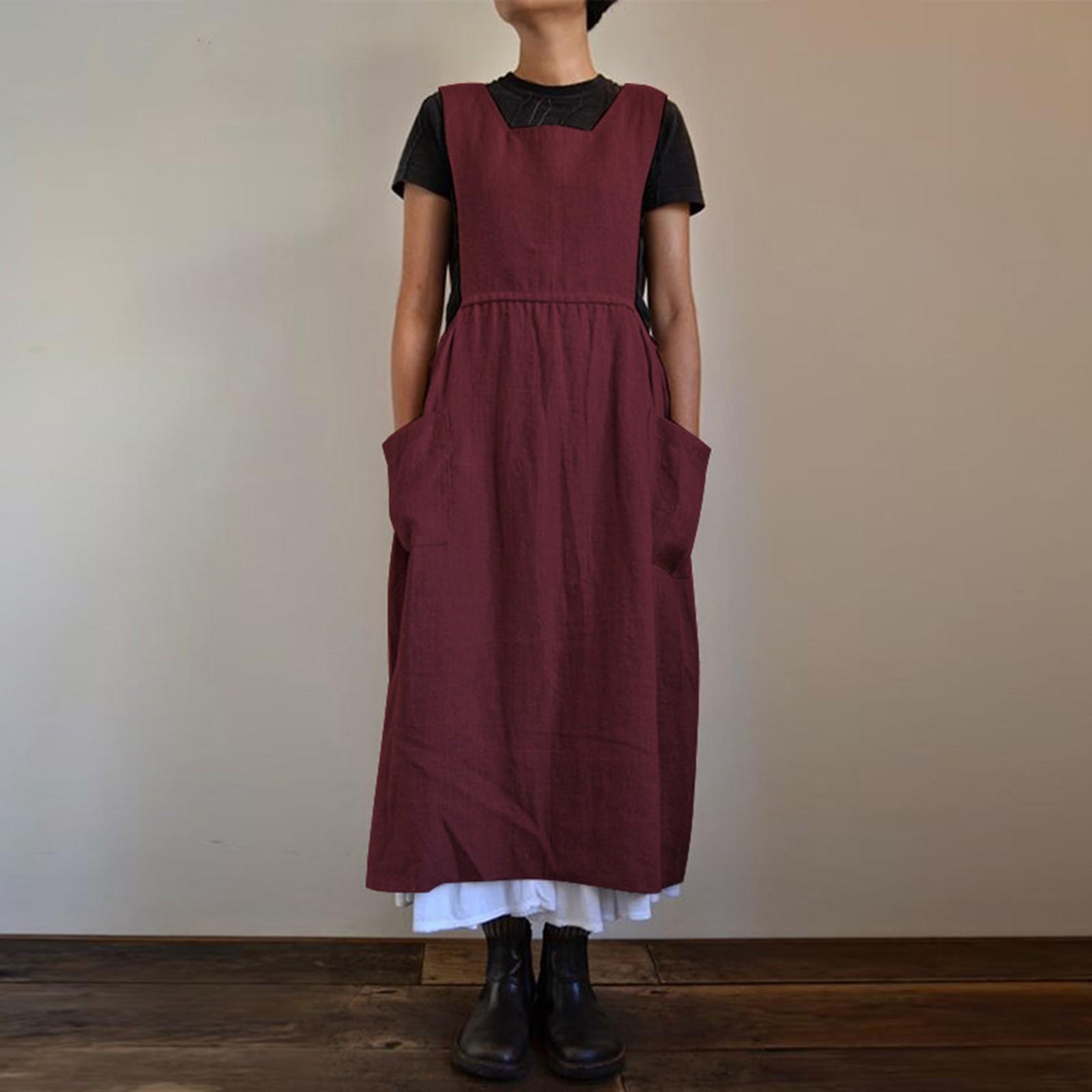 Женское повседневное свободное однотонное универсальное модное платье с длинными бретелями S винный