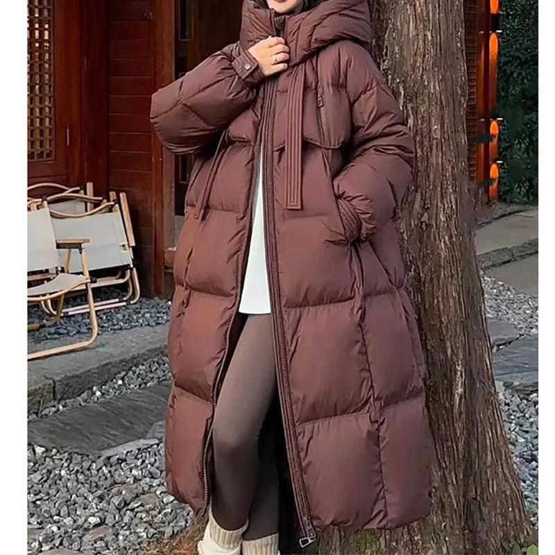Женское повседневное утепленное пуховое пальто с капюшоном, длинное пальто с карманом на молнии, женские офисные парки, осенне-зимнее пуховое пальто XL кофейный
