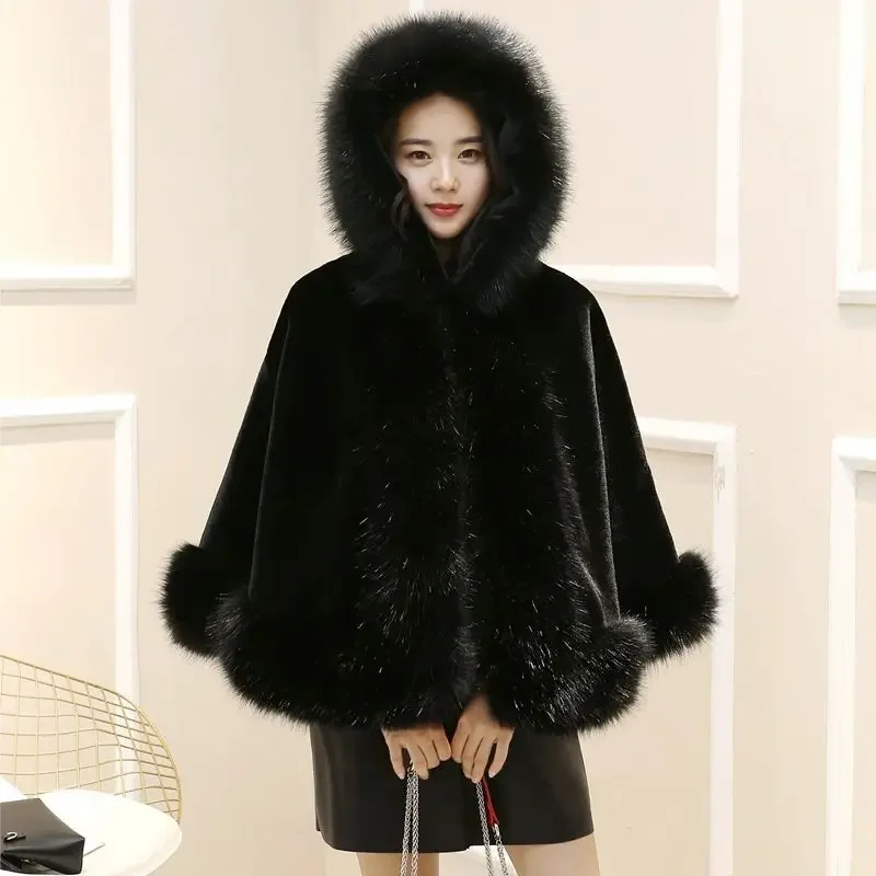 Женское пончо из искусственного лисьего меха, осенне-зимнее пальто, женские куртки, пальто, Женский Топ без рукавов из искусственной ткани, шаль с капюшоном, накидка, E588