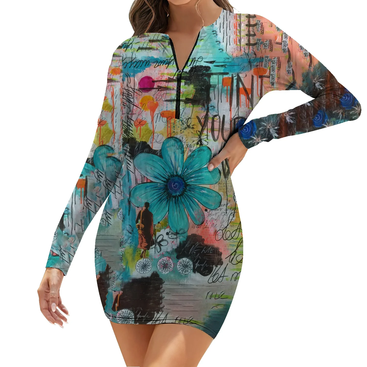 Женское приталенное платье на молнии, хлопковое ТРАПЕЦИЕВИДНОЕ ПЛАТЬЕ С Длинным Рукавом и цветочным 3D принтом, 2022