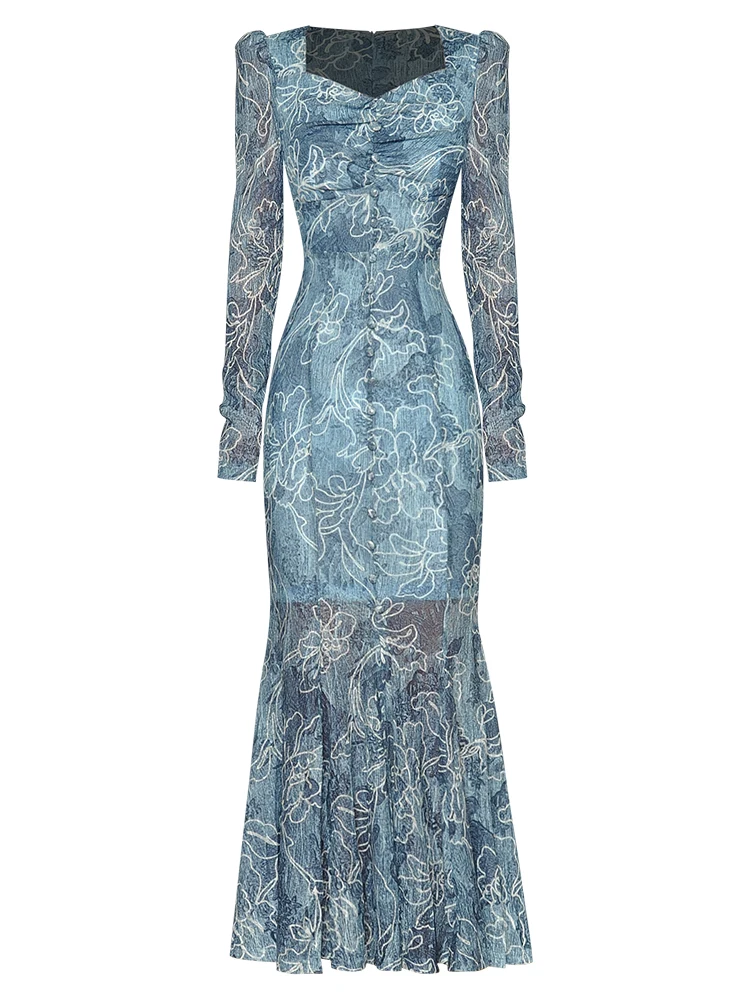 Женское приталенное платье с запахом, квадратным вырезом и длинным рукавом
