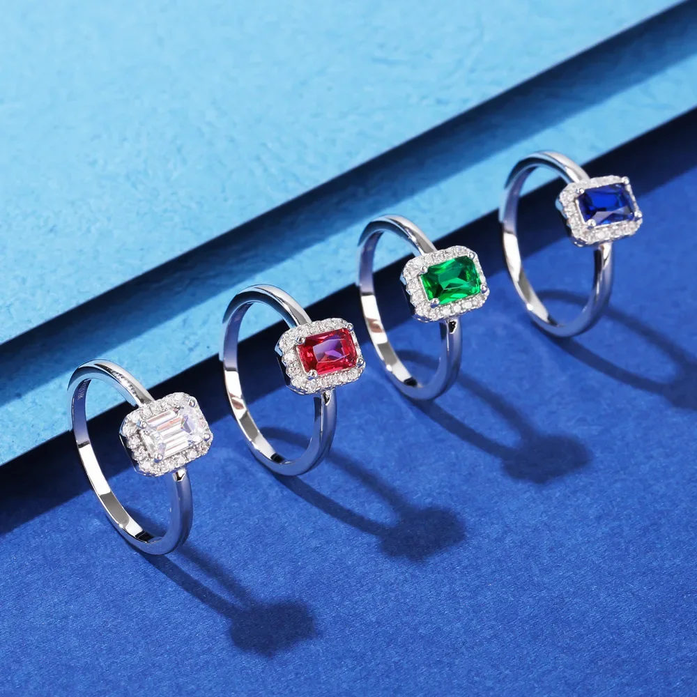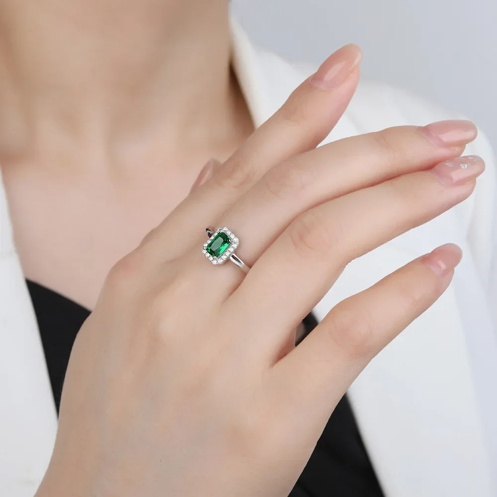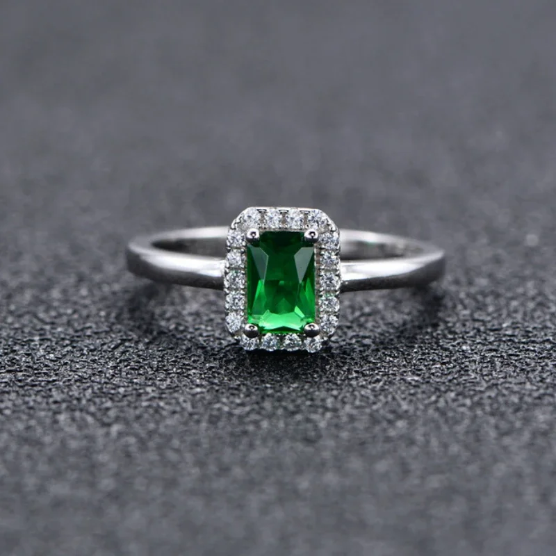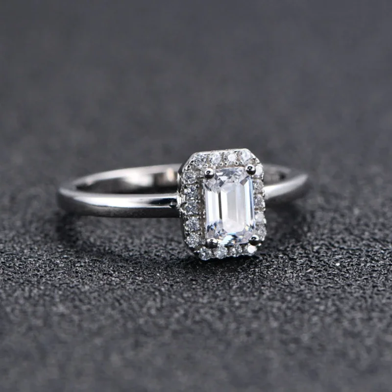 Женское прямоугольное кольцо из серебра пробы с цирконием