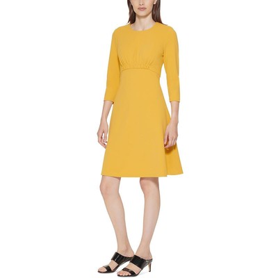 Женское расклешенное платье длиной выше колена с длинными рукавами Calvin Klein BHFO 1257, Ochre
